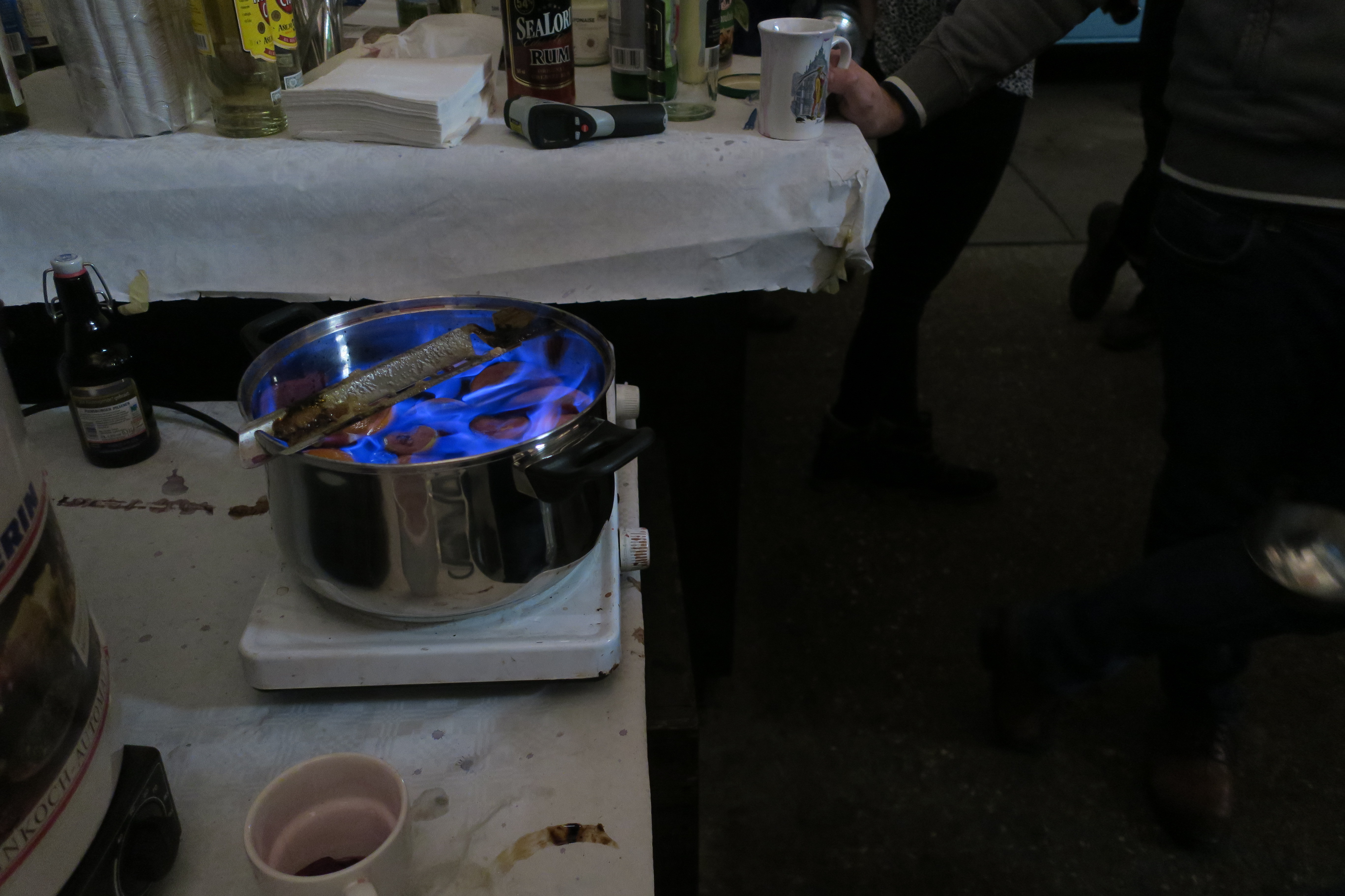 Neben leckerem Hotdogs und Pommes kamen auch die geistigen Getränke nicht zu kurz. Rund 11l Feuerzangenbowle wurden in 6 Töpfen dargereicht.